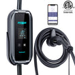 Adjustable 16A-40A EV home charger with J1772 plug, RGB LED, WiFi & Bluetooth, OCPP support, RFID & app control, ETL & Energy Star certified.