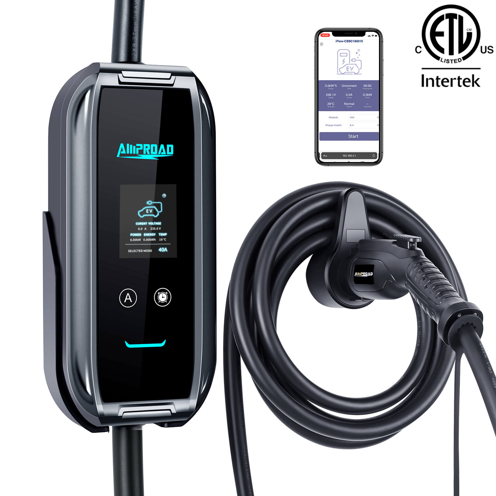 AMPROAD iFlow P9 Portable EV Charger | Level 2 Portable EVSE | NEMA 14-50 Plug | J1772 EV Charger 10A/16A/24A/32A/40A